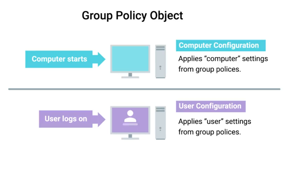 Important terminology used with Microsoft Windows Server Group Policies: