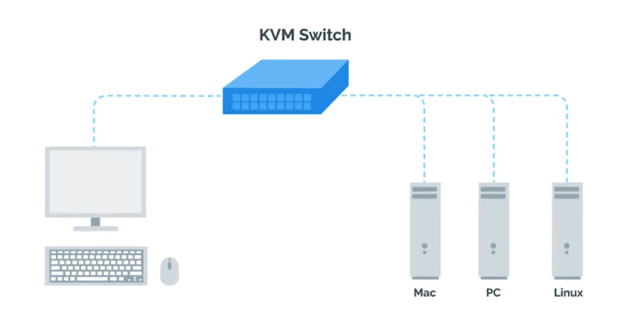 KVM Switch - Keyboard, video, and mouse to control multiple computers/servers from a single set of peripherals: