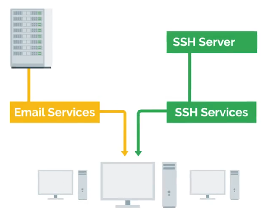A server can provide services to multiple users, and a client can use multiple services: