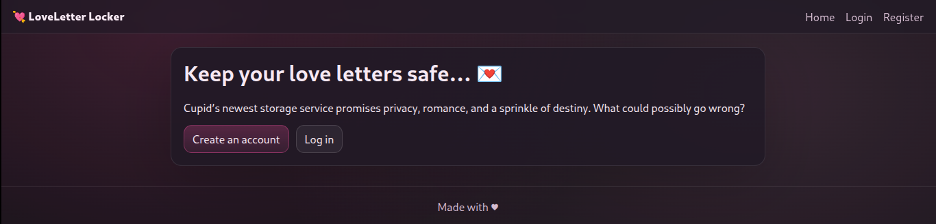 My Dearest Hacker, Welcome to LoverLetterLocker, where you can safely write and store your Valentine’s letters. For your eyes only?