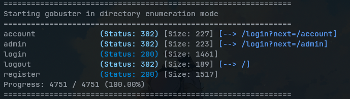 So, I quickly gobuster the app if I can find some hidden directories with common.txt (using SecLists):