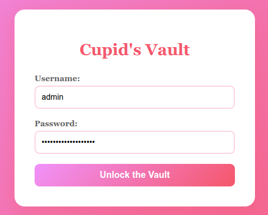 My Dearest Hacker, Cupid’s Vault was designed to protect secrets meant to stay hidden forever. Unfortunately, Cupid underestimated how determined attackers can be. Intelligence indicates that Cupid may have unintentionally left vulnerabilities in the system. With the holiday deadline approaching, you’ve been tasked with uncovering what’s hidden inside the vault before it’s too late.