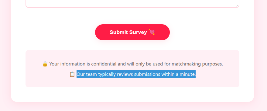 By submitting surveys, we get a perfect match. The app says that our submissions are reviewed within minutes: