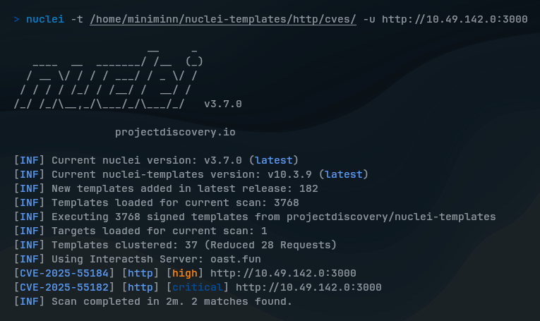 We see that the app uses Next.js version 16.0.6. After researching about it, I found out that it is vulnerable to recent CVE-2025-55182: